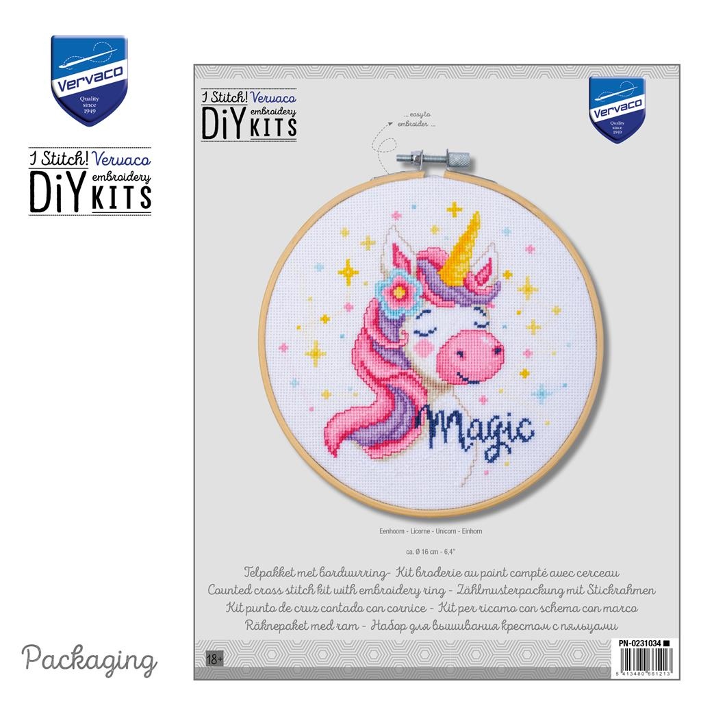 Vervaco Voorbedrukt Borduurpakket Unircorn met borduurring