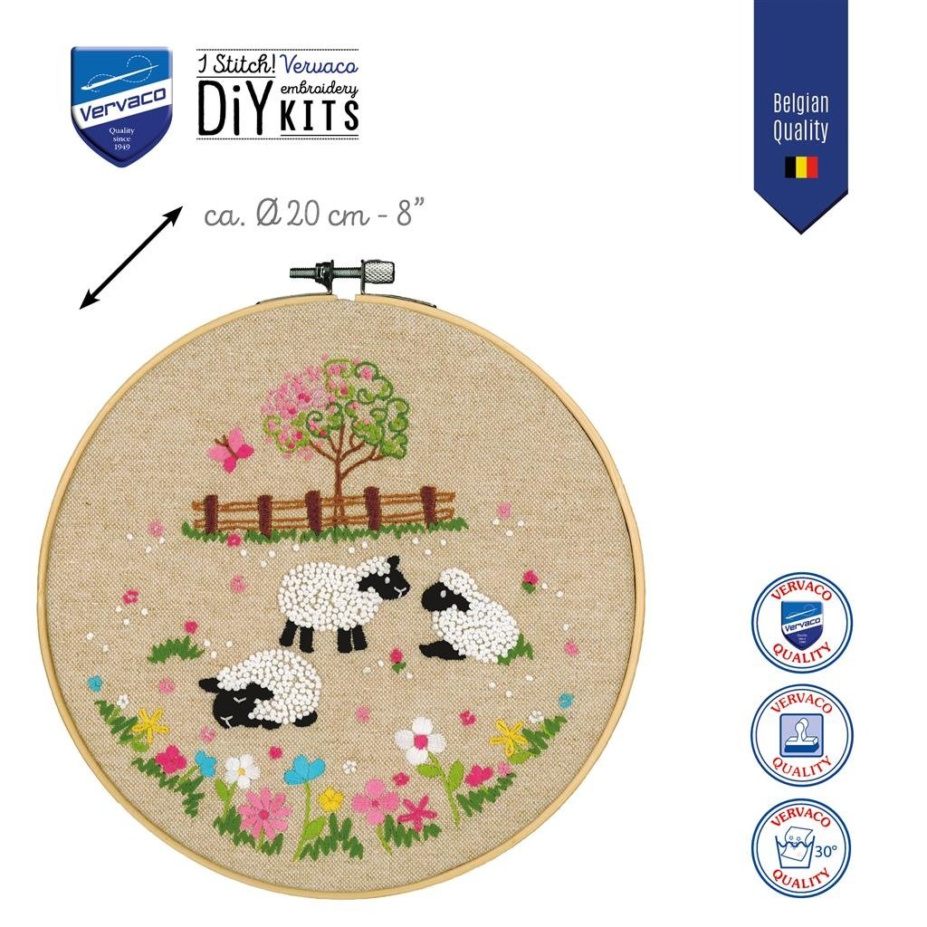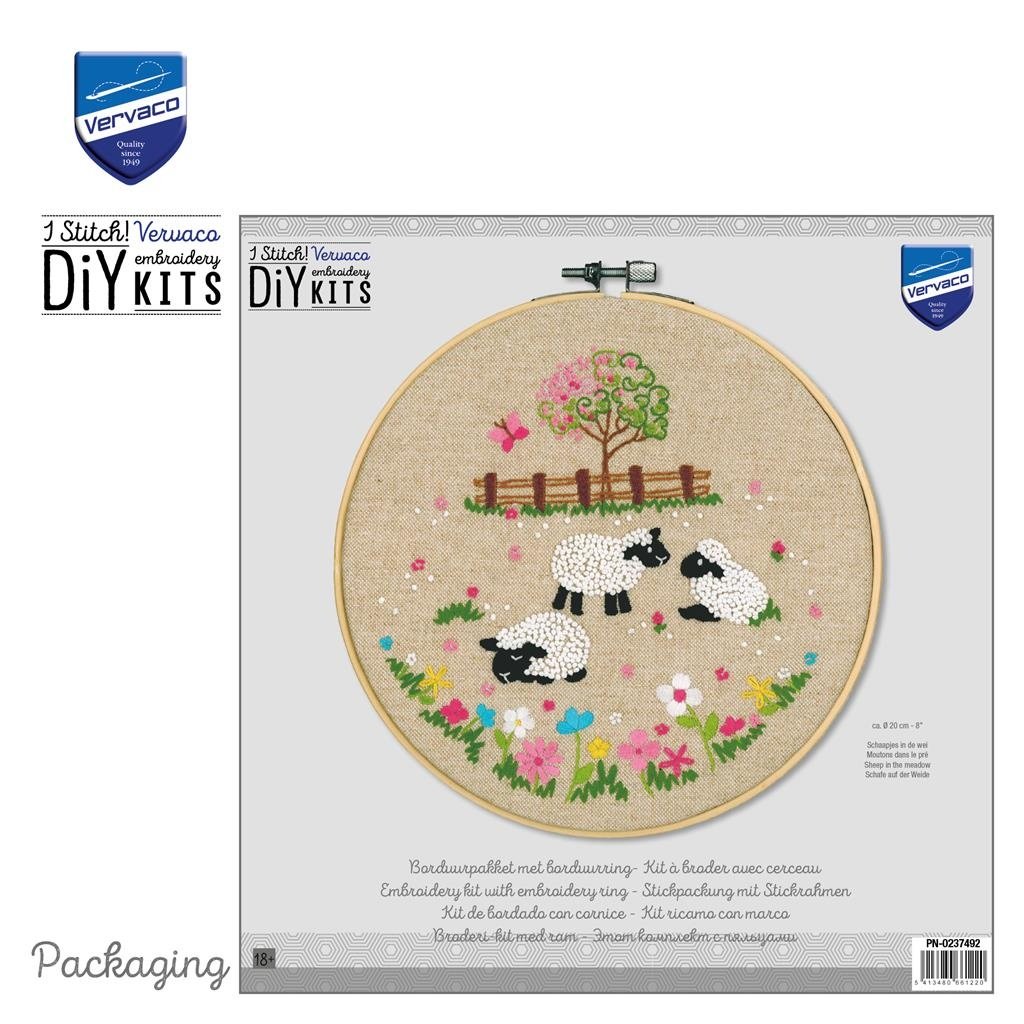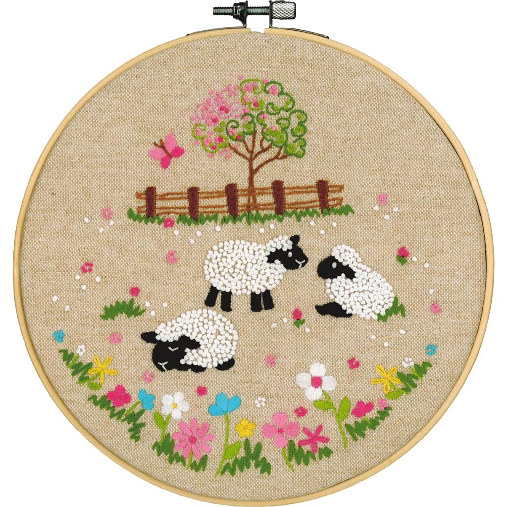 Voorbedrukt Borduurpakket met borduurring Schaapjes in de wei