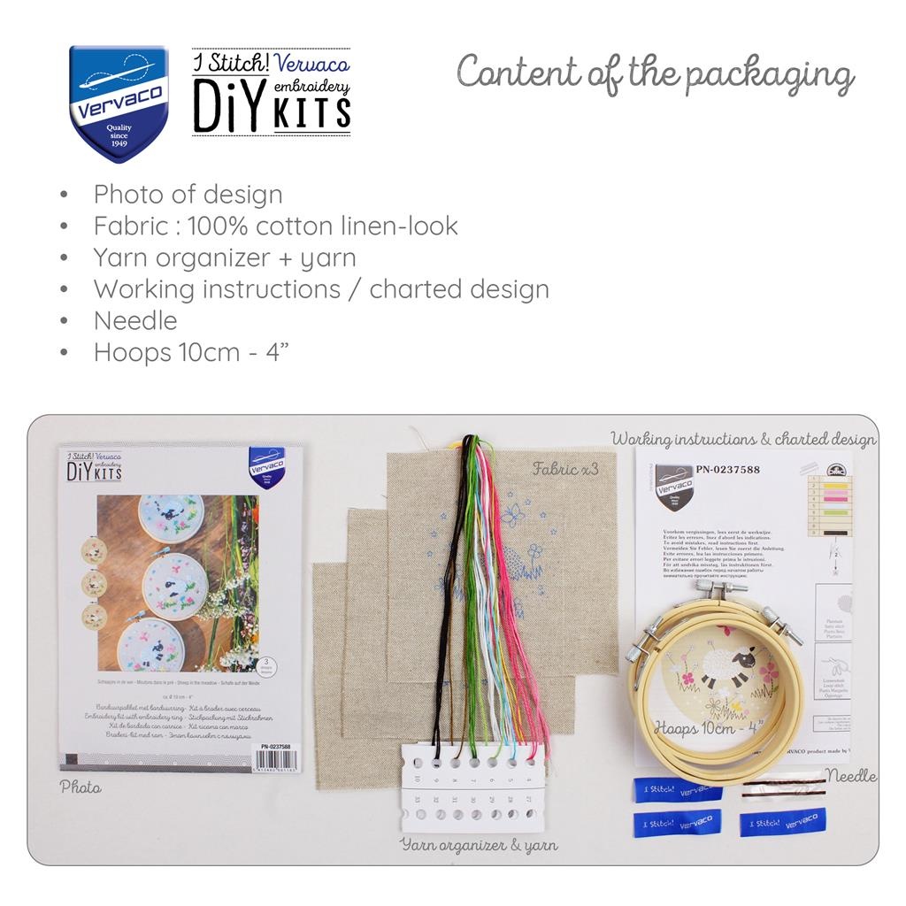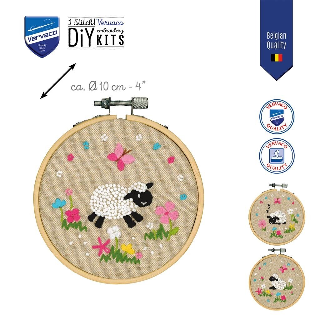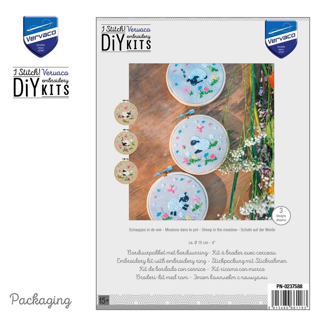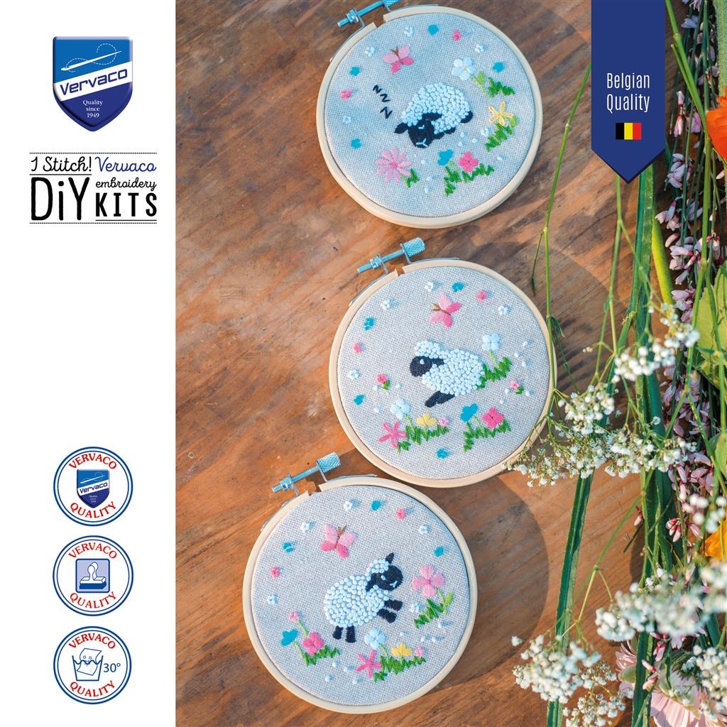 Set met 3 ronde borduurpakketjes met schattige schaapjes