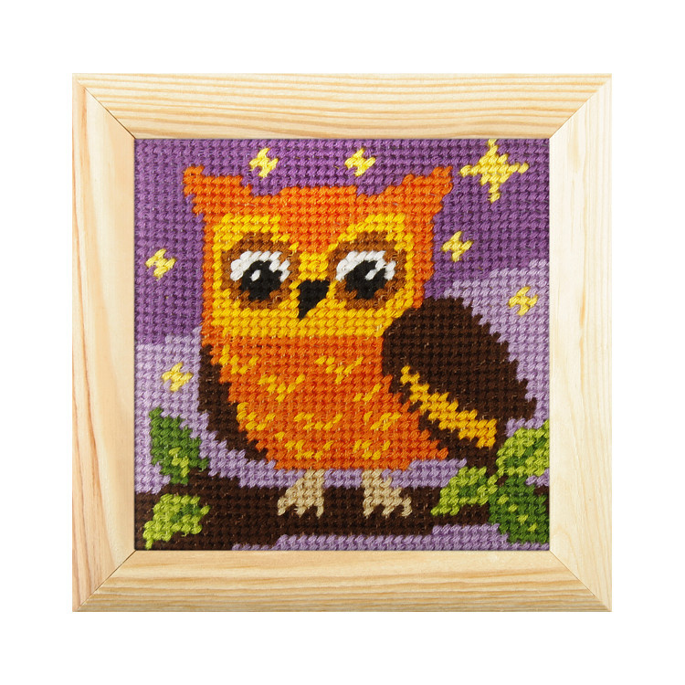 Voorbedrukt Borduurpakket Uiltje 10.5 x 10.5 cm met houten lijstje