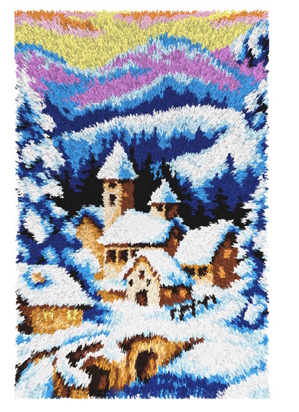 Voorbedrukt smyrna knoopkleed Winterdorp in de Bergen 50 x 74,5 cm