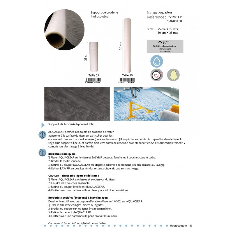 Wateroplosbare versteviging voor borduurwerk 50 cm breed