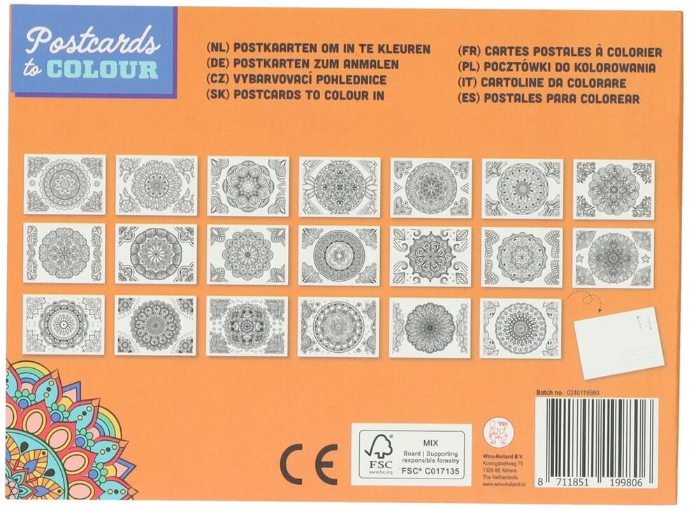 De Postkaarten van Wins Holland is een creatieve set met 20 ansichtkaarten die je zelf kunt inkleuren en personaliseren.