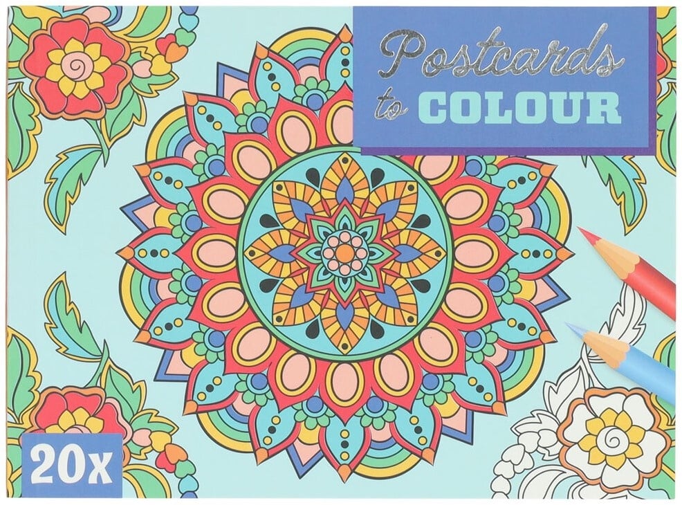 20 verschillende postkaarten om zelf in te kleuren.